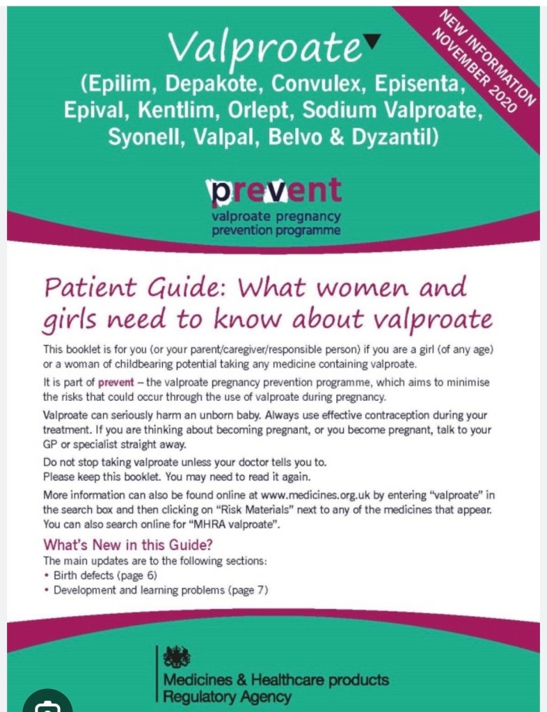 Valproate Guide for Women : https://www.medicines.org.uk/emc/rmm/104335/Document